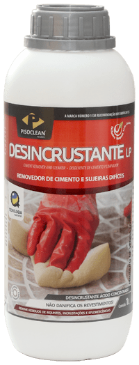 Propriedades e benefícios: • Removedor de resíduos de rejuntes cimentícios. • Limpador de eflorescências. • Limpador pós-obra. • Excelente para a limpeza de pisos demasiadamente danificados ou sujos. • Indicado para cerâmicas rústicas, porcelanatos polidos ou texturizados, cerâmicas esmaltadas, pedras em geral, etc. • EXCLUSIVA Nova Fórmula com ativo Biodegradável. • Sem cheiro algum. • Não danifica porcelanatos de qualquer tipo, granitos ou cerâmicas. Nenhum produto do gênero é tão seguro para você, seu piso e ao meio ambiente. Modo de usar: 1) Desincrustante LP é fornecido em estado concentrado. Recomendamos a diluição do produto em até quinze partes de água. 2) A limpeza deve ser feita com fibras de limpeza, trinchas, vassouras ou lavadoras profissionais. A escolha do acessório dependerá da textura do revestimento. Não use materiais abrasivos em superfícies polidas. 3) Espalhe a solução sobre a superfície e deixe agir durante 5 a 10 minutos. 4) Depois do tempo de ação, esfregue bem o revestimento até a total remoção das impurezas. Caso persista o problema, repita a operação com o mesmo tempo de ação e com a mesma diluição. É mais correto repetir o processo várias vezes do que aumentar o tempo de exposição. 5) Em superfícies muito contaminadas pode-se avaliar uma diluição menor desde que se faça um teste prévio. 6) Enxágue com água em abundância até remover todo o produto. Concentrado. Fácil de usar. Um litro rende até 120m².